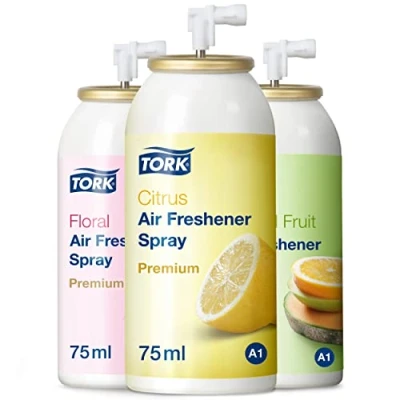 Tork 236056 Air Freshener Spray A1 Set of 3 x 4 / Refills Compatible with System/Premium Room Freshener/Mixed Fragrances: Citrus, Tropcial Fruit, Floral
