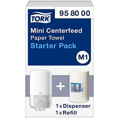 Tork Mini Centrefeed Paper Towel Starter Pack 958000 M1 + Wiping Refill (120 metres)