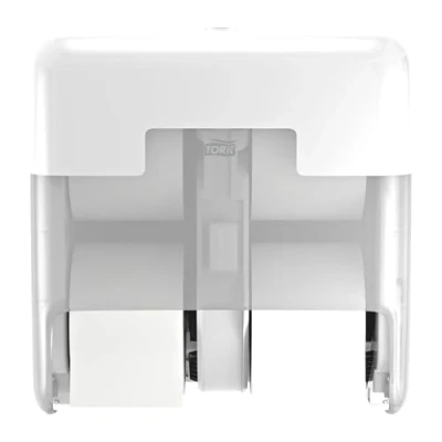 Serve up to 290 guests efficiently with this easy-to-use, high-capacity 4-roll vertical coreless toilet paper holder. Refill less often and reduce paper shortages as this tubeless toilet paper dispenser holds 3x more paper than conventional systems. Reduce waste with coreless toilet paper, which doesn't have cores or wraps. Choose from a wide range of Tork OptiServe Coreless dispensers to meet various washroom needs, so you can use coreless refills across the facility. Design: Elevation. W 17.4cm. H 32.3cm. D 31.9cm. Material: ABS. Color: White. Suitable for T7 refills from Tork.