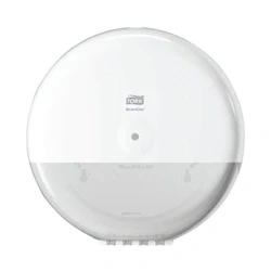 Paper dispenser for use with Tork T8 toilet rolls. Reduced costs and maintenance in high traffic washrooms. Innovative sheet by sheet dispensing through the centre. Improved hygiene with single sheet dispensing. High capacity for less maintenance.