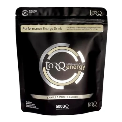 Torq Energy Drink Natural Vanilla Pod Isotonic Powder Electrolyte Drinks High Carbohydrates 30g per 500ml and Sodium 15 Servings 500g