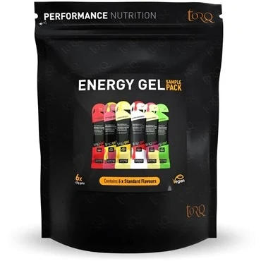 TORQ Gel Sample Pack - 6 gelsNot tried TORQ before? Our multi award-winning energy gels provide 30g ( 120 Kcal ) of multi-transportable carbohydrates in a research-proven 2:1 formulation. This allows you to consume up to 3 TORQ gels per hour without risk of gastric distress, in conjunction with the TORQ Fuelling System.Part of the TORQ Fuelling System - https://www.torqfitness.co.uk/torq-fuelling-systemFast-acting 2:1 Maltodextrin:Fructose formulation - up to 3 gels per hour30g carbohydrates / 120 kcal energy per 45g gel5 electrolytes to keep your body functioning properlyLight syrupy textureVegan recipeNo gluten-containing ingredients used100% natural with no artificial colours, flavours or sweetenersThis special sample pack provides you with 6 delicious TORQ gels of the 11 available. Apple Crumble, Cherry Bakewell, Lemon Drizzle, Raspberry Ripple, Rhubarb & Custard, Strawberry Yoghurt