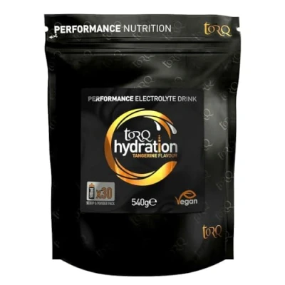 BlacksThe best value offer in the TORQ Hydration range, 30 x 500ml drinks in 1 resealable pouch.TORQ Hydration is a lightly flavoured hydrating drink mix, which has been formulated to optimise fluid and electrolyte delivery over any other factor.100% natural, TORQ Hydration uses a small amount of carbohydrate (15g / 60 Kcal per 500ml serving) to massively speed up absorption and hydration, when compared to water alone or artificially flavoured electrolyte-only solutions / tablets.Easy to store in your kit bag or kitchen, TORQ Hydration is perfect for those high intensity indoor Zwift sessions, gym work, racket sports, 5 a-side – any time where remaining hydrated is a greater necessity than fuelling.