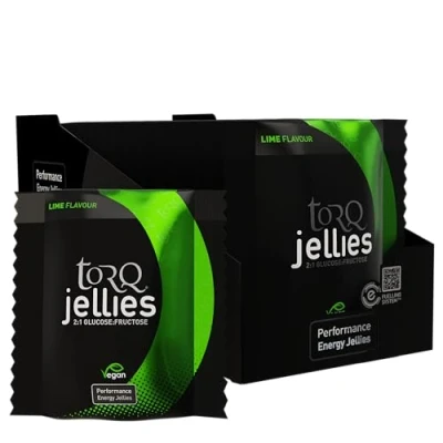 TORQ Jellies Energy Jelly Chews/Energy Gummies Quick Release On The Go Pocket Sized Packs for Convenience Suitable Vegans Lime Box of 15