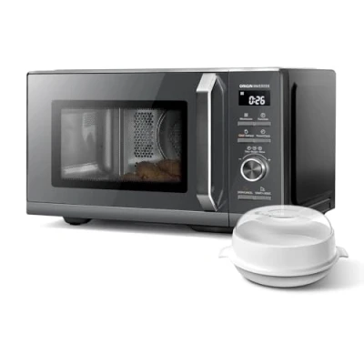 6-in-1 Microwave: This versatile 6-in-1 combination microwave, air fry auto menus, grill, convection, combi and steam function appliance is a great countertop space-saving solution, providing quick and convenient cooking in your home 10 Auto menus settings: Choose from 10 auto menus to take the guess work out of cooking, your time in the kitchen a little bit easier by choosing from one of the 10 preset options to cook your food, the menus include paste, pizza, chicken,etc 9 Healthy air fry auto menu settings: With additional 9 air fry menus you can enjoy fried food in a healthier way without scarifying on the taste, so that you can cook any of your family favourites from a roast chicken to crunchy vegetables and even fresh baked goods, making cook crispy, golden foods effortlessly Origin Inverter: The ORIGIN INVERTER combination microwave oven has been designed to deliver a linear power output with a precise temperature control, providing a seamless cooking experience; The ORIGIN INVERTER technology, shortens the heating time and saves energy; This clever technology also replaces noisy transformers and capacitors to reduce noise levels to 57dB, making it super quiet Chef defrost: The Toshiba microwave oven has professional defrost program prevents food from overheating on the outside and under heating on the inside; Power is adjusted to generate a precise power control to prevent overcooking Healthy steam with steamer: This Toshiba microwave oven has microwave steamer that can steam your food conveniently in the microwave; Water boils under the steam tray while the lid contains moisture, for healthy and delicious foods with nutrients locked in; It is suitable for vegetable or seafood