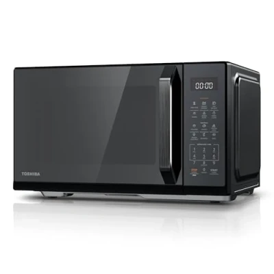Mirrored Finishi Design: This Toshiba mirorr black microwave features a sleek black body and contemporary mirror door finish, equippped with recise knobs, textured buttons, full touch control, electric panel and all-over flat, neutral and classic design fit in nicely with any kitchen Large Capacity : This Toshiba 23L microwave offers good capacity perfect for various life scenarios, with a little footprint, this microwave oven is a nice choice for family kitchens, caravans, student homes & flats Easy To Use For The Elderly: This Toshiba 900w microwave offers 11 power settings make you cook easier, allowing you to cook popcorn, potatoes, frozen vegetables, hot beverages according to your unique needs, this microwave oven offers electronic control panel, which is friendly for elder to operate Express Cook: This Toshiba mirorr black microwave starts cooking instantly by selecting cooking time from 1 second to 6 min, the pre-programmed menu and procedural memory will allow you to heat your favourites in just one touch Cooking More Convenient and Faster: This Toshiba digital microwave provides 7 Preset Recipes, just one touch, you can quickly enjoy delicious foods by using the Pre-Programmed Recipes Evenly Defrost: This Toshiba 900w microwave provides defrost by weight and time function, you can defrost foods evenly without overheating, start defrosting instantly and your food will be ready in few minutes, making it ideal for leftovers or an emergency snack Easy Touch Control:This Toshiba digital microwave provides LED display, you can start cooking instantly by selecting cooking time from 1 second to 6 min, also you can accurately control time from 1 to 100 mins, give enough time to cook your meals with complete precision so they’re perfect and ready to sesrve Low-Noise Operation: Fitted with blade fans, this Toshiba solo microwave is exceptionally quiet during use, great for new parents who want to let their baby sleep Large Capacity : This Toshiba 23L microwave offers good capacity perfect for standard dinner plates, contained within a compact size ((Exterior: 46.9x37.8x28.0cm, Interior: 32.9x32.8x22.8cm (WxDxH)), you can easily make 10 inches pizza, the glass turntable is 288mm, removable for easy cleaning Sleek Mirror Black abd Safety Design: This Toshiba mirror balck microwave neutral and classic design fit in nicely with any kitchen. Child lock function prevents children from operating the microwave.And Toshiba microwave is protected by Toshiba's 1-year guarantee
