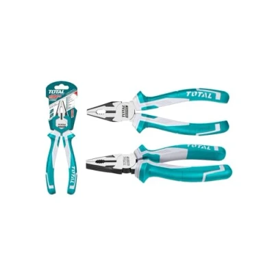 UNIVERSAL PLIER: TOTAL reinforced universal pliers are manufactured from chrome vanadium, making it highly durable and resistant to rust and corrosion. This tool, built to last, ensures a long service life without worries. The professional quality of materials and finishes of this plier ensures a long service life and optimal performance in all your projects. Length: 180mm DETAILS: With 30% more strength than other conventional pliers, these tongs are able to perform renovation and maintenance work accurately and firmly. There will be no task that can resist you. Allows you to tighten and bend objects precisely and firmly. ERGONOMIC: The ergonomic fibre handle with anti-scratch protection attachment offers a safer and easier way of working. In addition, the universal gripper includes a non-slip rubber handle for a comfortable and secure grip. USES: With a length of 180 mm, the reinforced universal pliers from TOTAL is a practical and versatile tool that will allow you to carry out a wide variety of renovations and maintenance work. It has a suitable size for home use and easy handling. It is a tongs that features hooks for hanging, so you will have your equipment better organized. PROFESSIONAL QUALITY: When doing renovation and maintenance work, it is essential to have all the right tools for your DIY projects. At TOTAL we offer you a functional and practical solution with our products. We have a catalogue of hand tools, battery-powered, corded, accessories and gardening tools.