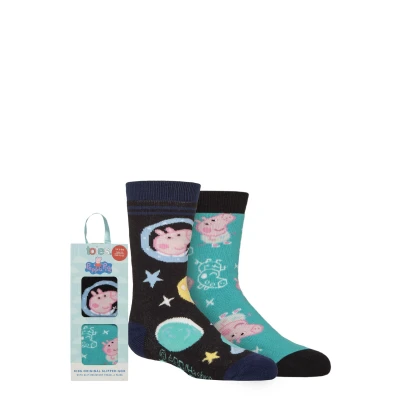 AmazonPeppa Pig & George Designs: Adorable character socks perfect for kids. Terry Lined: Provides extra warmth and comfort. Slip-Resistant Tread: Ensures secure footing indoors. Twin Pack: Two pairs for convenience and variety. Cotton Blend: Soft and breathable for everyday wear. Machine Washable: Easy care at 30° for parents. Gift-Ready Packaging: Perfect for gifting to little ones. Fun & Functional: Keeps kids warm and safe while showcasing their favorite characters.