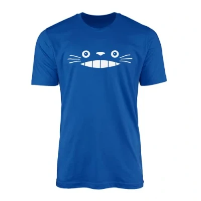 Totoro Grin Face T Shirt Manga Japanese Japan Anime Film Cartoon My Neighbor Sister Daughter Father Gift Present Top 100% Combed Organic Cotton Vegan Ink (Medium, Royal Blue)