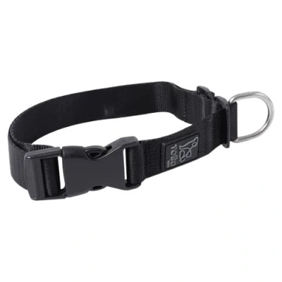 TOTTO Collar for Large Dogs, Model Mylu, Size L, Adjustable Dog Collar, Heavy Duty Hardware, Safety Plate, D Ring Leash, Black