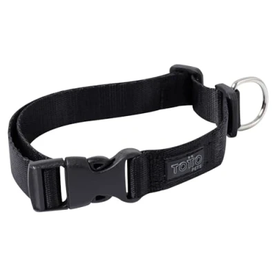 TOTTO Collar for Medium Dogs, Model Mylu, Size M, Adjustable Dog Collar, Heavy Duty Hardware, Safety Plate, D Ring Leash, Black