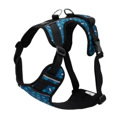 TOTTO Heikul Dog Harness, Size L, Small Adjustable, Reflective Details, Loop for Leash and Handle, Easy to Install, Lightweight, Blue Green Bone Print