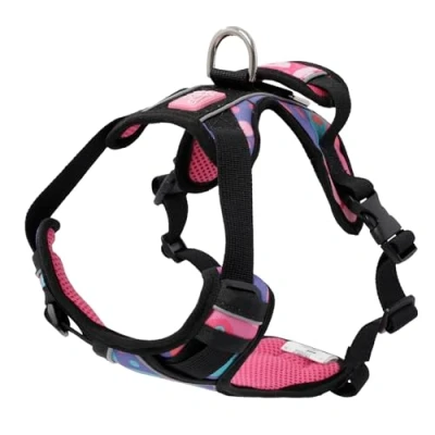 TOTTO Heikul Dog Harness, Size M, Small Adjustable, Reflective Details, Loop for Leash and Handle, Easy to Install, Lightweight, Multi Coloured Mega Hearts Print