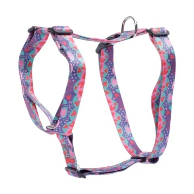 TOTTO Large Dog Harness, Figgo Model, Size XL, Breastplate, H Type Design, Adjustable, Reduces Pressure in Trachea, Comfortable and Easy to Place, Lightweight, Multi Coloured Mega Hearts Print