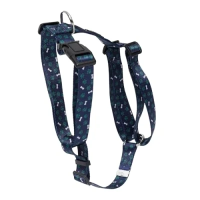 TOTTO Large Dog Harness, Model Figgo, Size L, Breastplate, Type H, Adjustable, Reduces Pressure in Trachea, Comfortable and Easy to Place, Lightweight, Blue Green Bone Print
