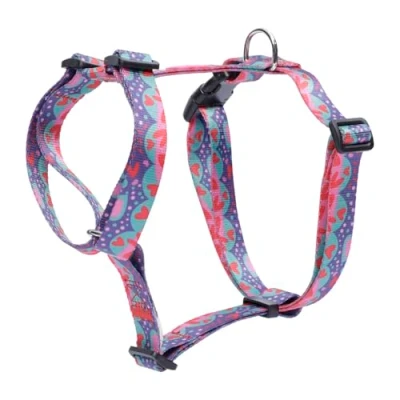 TOTTO Medium Dog Harness, Figgo Model, Size M, Breastplate, H Type Design, Adjustable, Reduces Pressure in Trachea, Comfortable and Easy to Place, Lightweight, Multi Coloured Mega Hearts Print