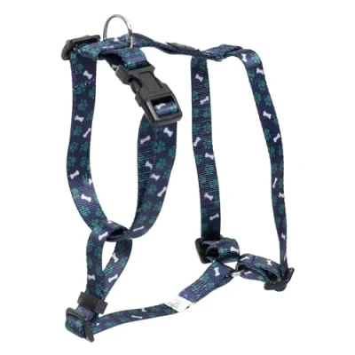 TOTTO Small Dog Harness, Model Figgo, Size S, Breastplate, H Type Design, Adjustable, Reduces Pressure in Trachea, Comfortable and Easy to Place, Lightweight, Blue Green Bone Print