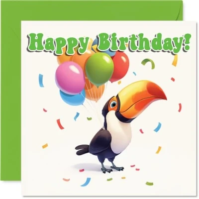 Toucan Birthday Card Balloon Animals Happy Cards for Son Daughter Brother Sister Grandson Granddaughter Niece Nephew Cousin, 145mm Bday Greeting