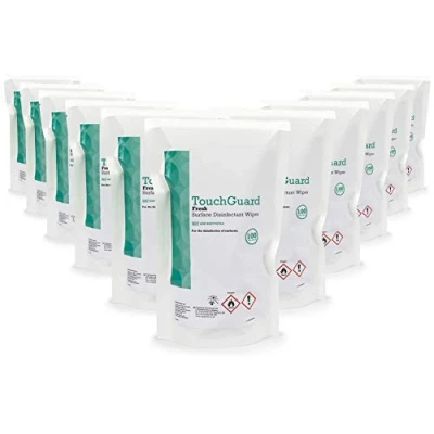 TouchGuard Fresh, Surface Disinfectant Wipes, Refill Bag, Multipack of 12 x 100, Total 1200 Wipes Made in UK