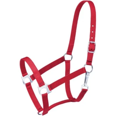 Strong Nylon halter Brass plated hardware Buckle at crown Package Dimensions: 11" L x 8" W x 0.25" H