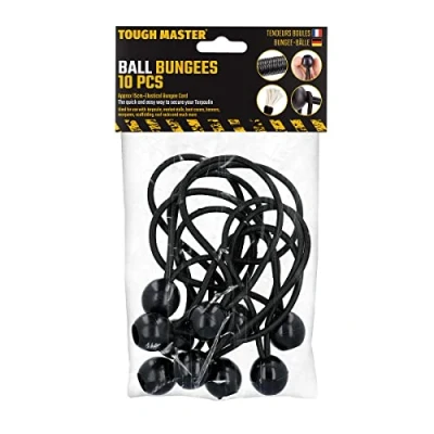 DURABLE DESIGN: These long-lasting nylon adjustable ball anchors resist overstretching and fraying and have a hard-wearing plastic ball end WEATHER RESISTANT: The strong design and weatherproof materials mean that these bungee cords can be used year-round in all weather conditions EASY TO USE: Just take each mini bungee and put the loop end under your hook, then feed the loop end through a grommet etc., before fitting the plastic ball of the mini bungee through the loop end and pulling it tight VERSATILE: You can use your bungee cords for tarpaulins, banners, tents & marquees, cable tidies etc. You’ll no doubt think of a few more uses of your own REUSABLE: These handy bungee cords have an outer layer of durable nylon plus an elastic latex inner core, so they retain their shape and stretchiness even after lots of use, Weight: 0.25573622392 Pounds, Manufacturer: TOUGH MASTER