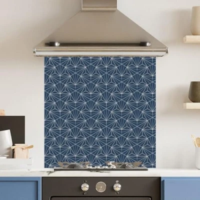 Toughened 6mm Glass Kitchen Splashback 60 x 60cm Blue Gold Pattern - Polished Heat Resistant Back Splash for Cookers Hob
