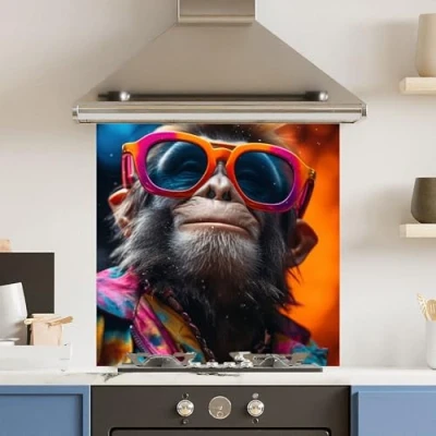 Toughened 6mm Glass Kitchen Splashback 60 x 60cm Monkey Glasses Polished Edge Heat Resistant Back Splash for Cookers Hob