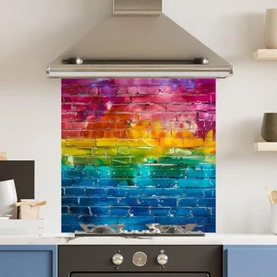 Toughened 6mm Glass Kitchen Splashback 60 x 60cm Pride Brick Polished Edge Heat Resistant Back Splash for Cookers Hob