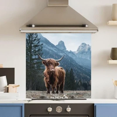 Toughened 6mm Glass Kitchen Splashback 60 x 60cm Regal Cow Polished Edge Heat Resistant Back Splash for Cookers Hob