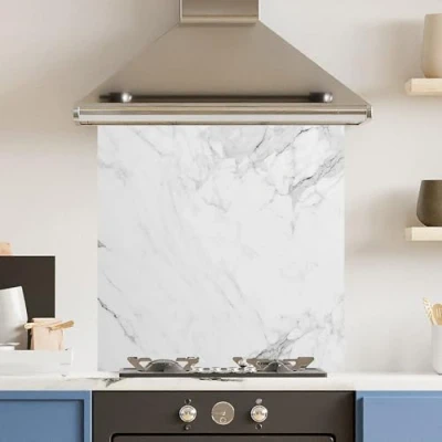 Toughened 6mm Glass Kitchen Splashback 60 x 60cm White Veiny Marble Polished Heat Resistant Back Splash for Cookers Hob