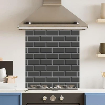Toughened 6mm Glass Kitchen Splashback 60 x 65cm Black Metro Tile Polished Heat Resistant Back Splash for Cookers Hob