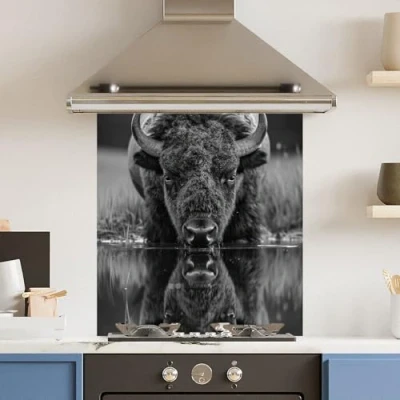 Toughened 6mm Glass Kitchen Splashback 60 x 65cm Black White Bison Polished Heat Resistant Back Splash for Cookers Hob
