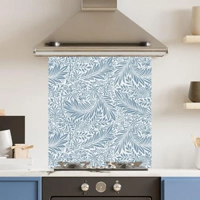 Toughened 6mm Glass Kitchen Splashback 60 x 65cm Blue Floral Polished Edge Heat Resistant Back Splash for Cookers Hob