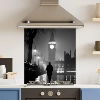 Toughened 6mm Glass Kitchen Splashback 60 x 65cm Monochrome BigBen Polished Heat Resistant Back Splash for Cookers Hob