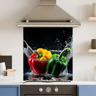 Toughened 6mm Glass Kitchen Splashback 60 x 65cm Pepper Splash Polished Edge Heat Resistant Back for Cookers Hob