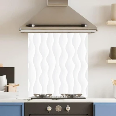 Toughened 6mm Glass Kitchen Splashback 60 x 65cm Wavy White Pattern Polished Heat Resistant Back Splash for Cookers Hob