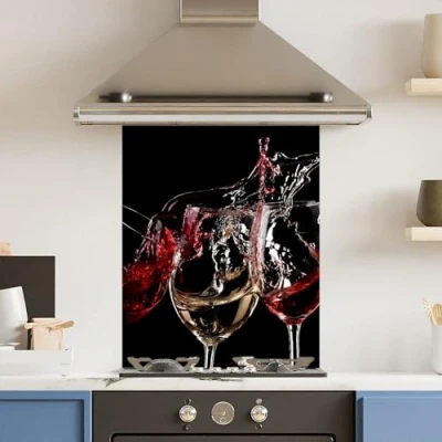 Toughened 6mm Glass Kitchen Splashback 60 x 75cm 3 Wine Glasses Polished Edge Heat Resistant Back Splash for Cookers Hob