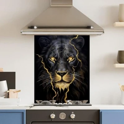 Toughened 6mm Glass Kitchen Splashback 60 x 75cm Gold Lion Polished Edge Heat Resistant Back Splash for Cookers Hob