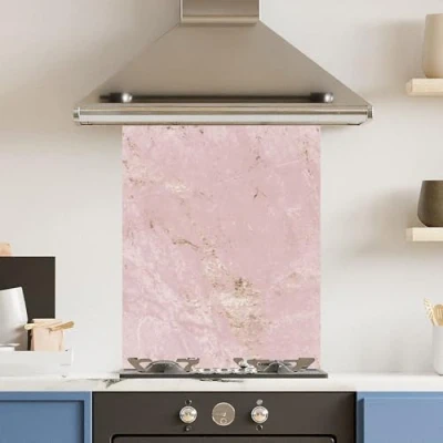 Toughened 6mm Glass Kitchen Splashback 60 x 75cm Pink Gold Marble Polished Heat Resistant Back Splash for Cookers Hob