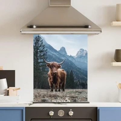 Toughened 6mm Glass Kitchen Splashback 60 x 75cm Regal Cow Polished Edge Heat Resistant Back Splash for Cookers Hob