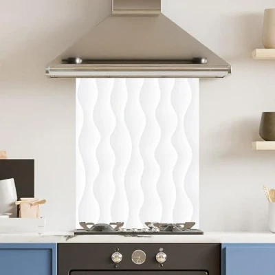 Toughened 6mm Glass Kitchen Splashback 60 x 75cm Wavy White Pattern Polished Heat Resistant Back Splash for Cookers Hob