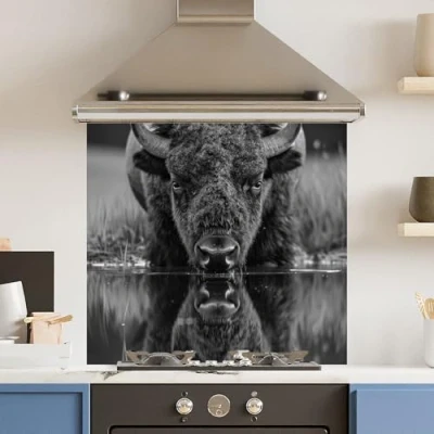 Toughened 6mm Glass Kitchen Splashback 70 x 65cm Black White Bison Polished Heat Resistant Back Splash for Cookers Hob
