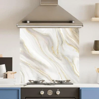 Toughened 6mm Glass Kitchen Splashback 70 x 65cm Elegant Gold Marble Polished Heat Resistant Back Splash for Cookers Hob