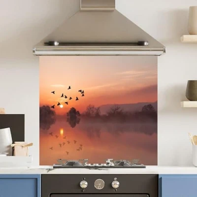 Toughened 6mm Glass Kitchen Splashback 70 x 65cm Misty Morning Polished Edge Heat Resistant Back Splash for Cookers Hob