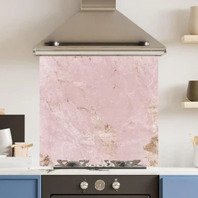 Toughened 6mm Glass Kitchen Splashback 70 x 65cm Pink Gold Marble Polished Heat Resistant Back Splash for Cookers Hob