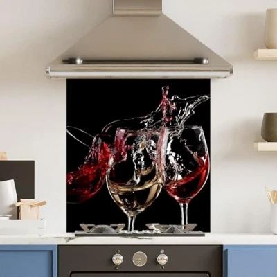 Toughened 6mm Glass Kitchen Splashback 70 x 75cm 3 Wine Glasses Polished Edge Heat Resistant Back Splash for Cookers Hob