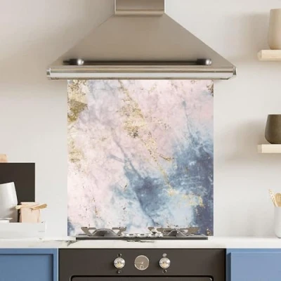 Toughened 6mm Glass Kitchen Splashback 70 x 75cm Pink Blue Marble Polished Heat Resistant Back Splash for Cookers Hob