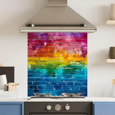 Toughened 6mm Glass Kitchen Splashback 70 x 75cm Pride Brick Polished Edge Heat Resistant Back Splash for Cookers Hob