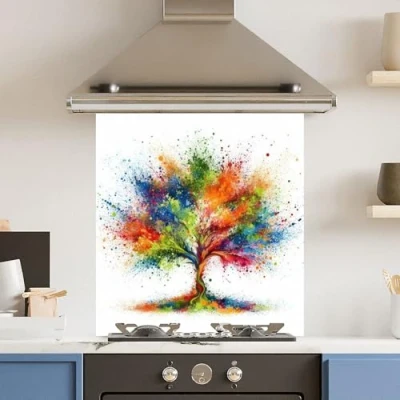 Toughened 6mm Glass Kitchen Splashback 70 x 75cm Rainbow Tree Polished Edge Heat Resistant Back Splash for Cookers Hob