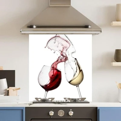 Toughened 6mm Glass Kitchen Splashback 70 x 75cm White Wine Glasses Polished Heat Resistant Back Splash for Cookers Hob